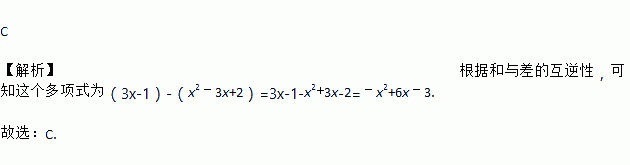 C 【解析】根据和与差的互逆性,可知这个多项式为(3x-1)-(x2﹣3x+2)=3x-1-x2+3x-2=﹣x2+6x﹣3. 故选:C.下列运算正确的是( )