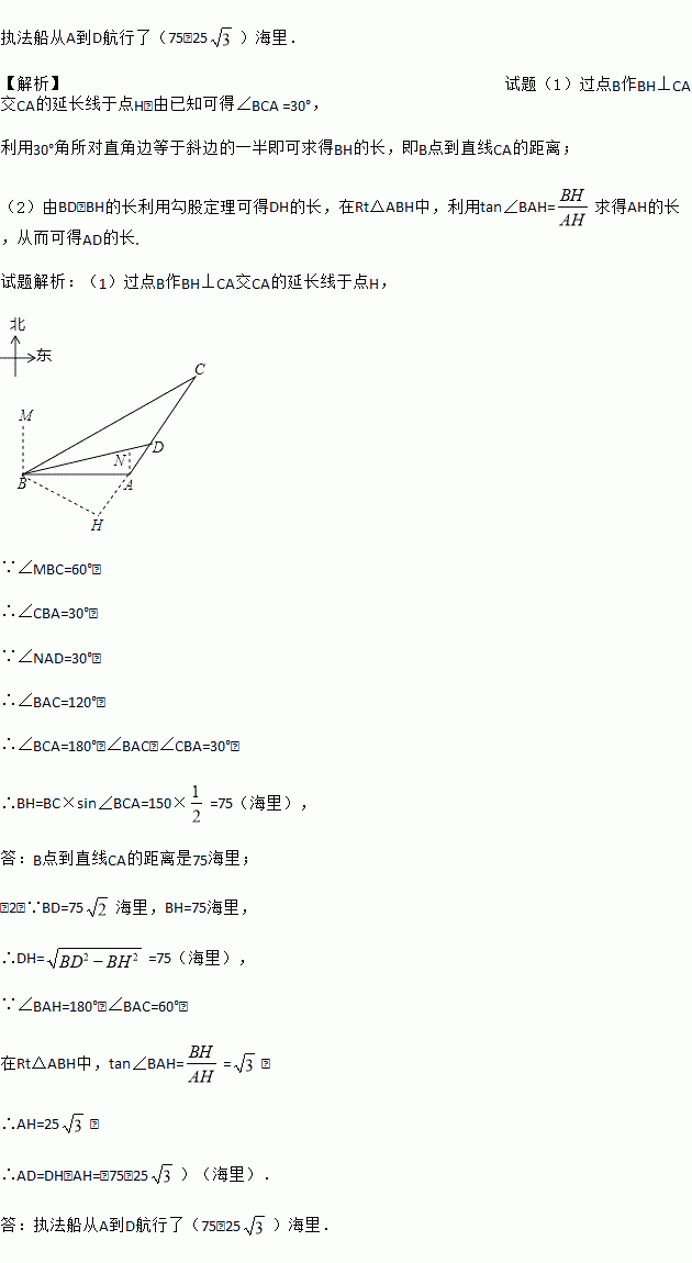 (2)执法船从A到D航行了多少海里?(结果保留根号)