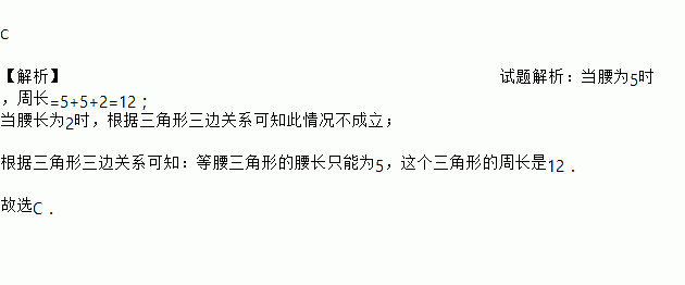 一个等腰三角形的两边长分别为2和5,则它的周长为( )