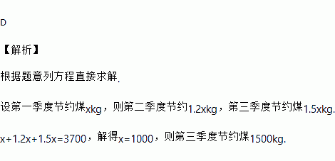 某学校第一季度共节约煤3 700 kg,其中2月份比1月份多节约20%,3月份比2月份多节约25%,则这个学校3月份节约煤( )