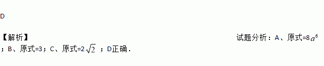 A. (2a2)3=8a5 B. ()2=9 C. 3-=3 D. -a8÷a4=-a4