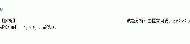 的图象交于A(-1,2)、B(1,-2)两点,若y1<y2,则x的取值范围是( )