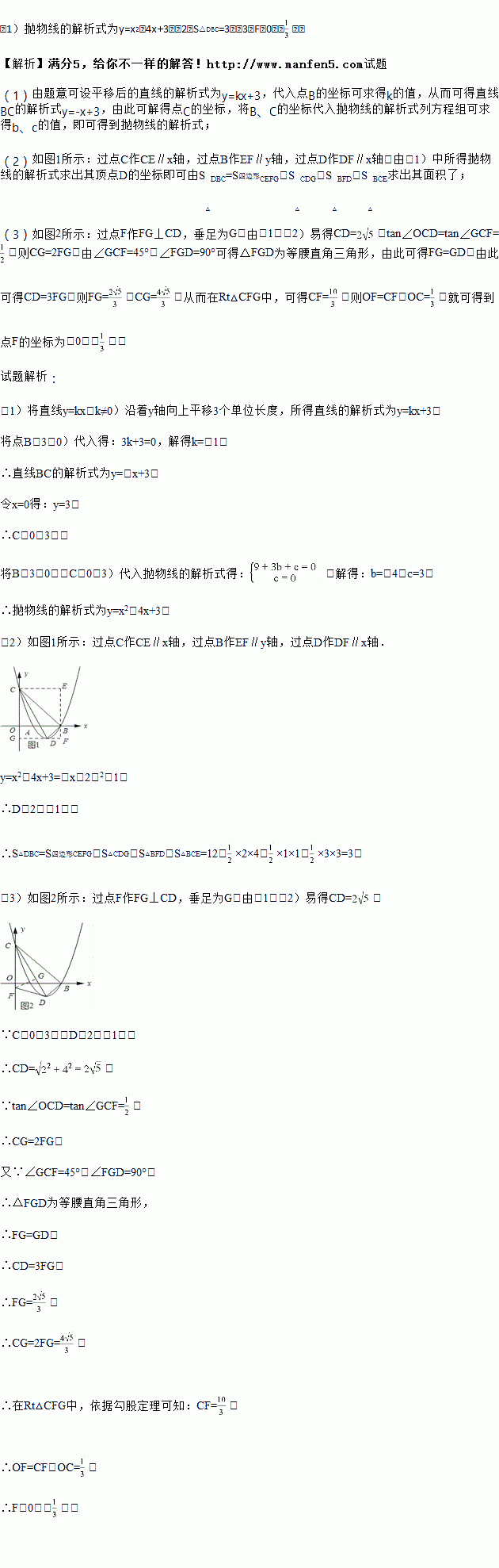 (3)如果点F在y轴上,且∠CDF=45°,求点F的坐标.