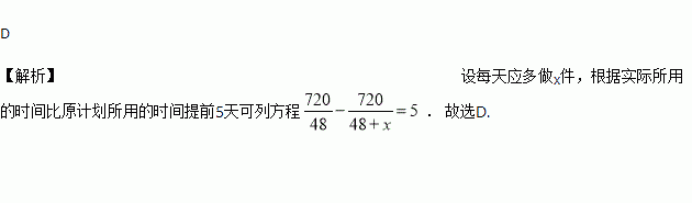 某厂接到加工件衣服的订单,预计每天做件,正好按时完成,后因客户要求提前天交费,设每天应多做件,则应满足的方程为( ).