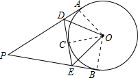 解答:解:(1)∵PA、PB、DE分别切⊙O于A、B、C,