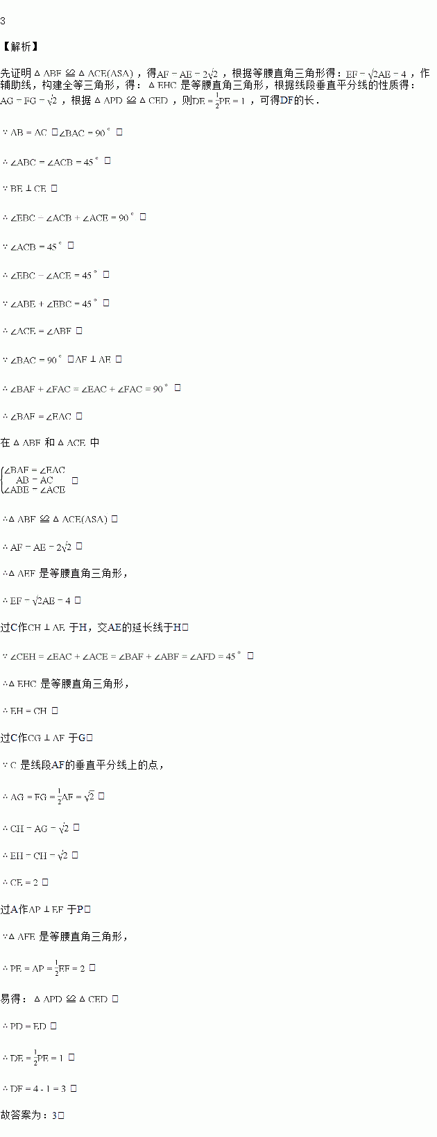 如图,中,,,,垂足是E,BE交AC于点D,F是BE上一点,,且C是线段AF的垂直平分线上的点,,则______.