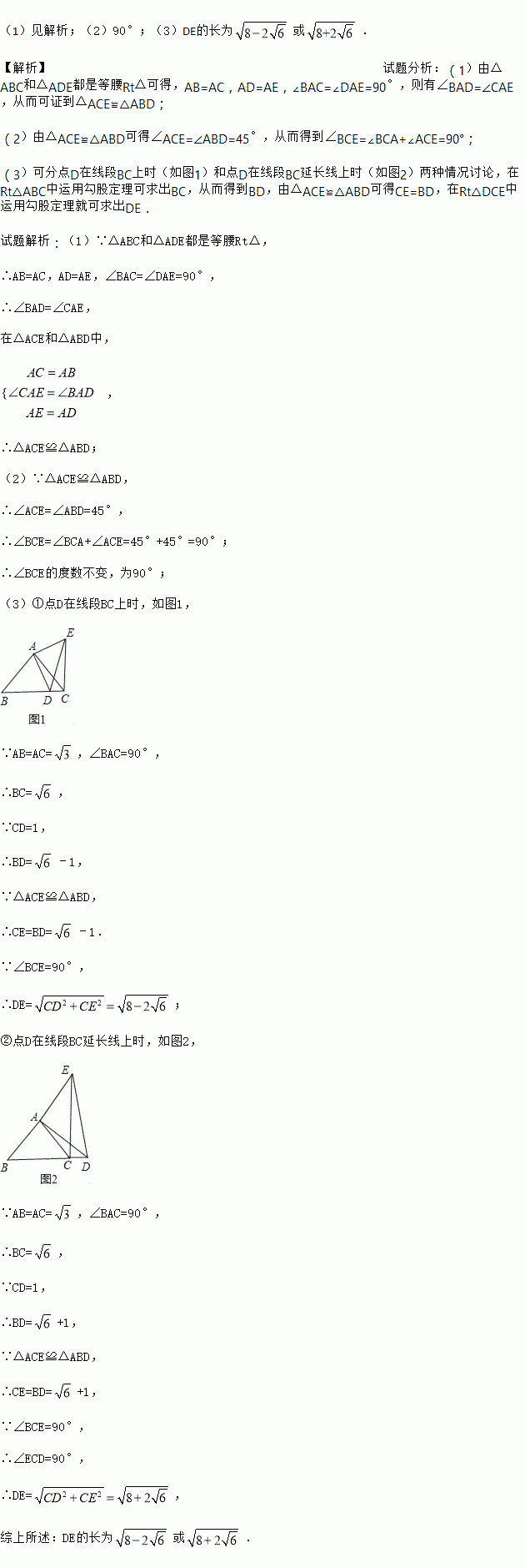 (1)如图,求证:△ACE≌△ABD;