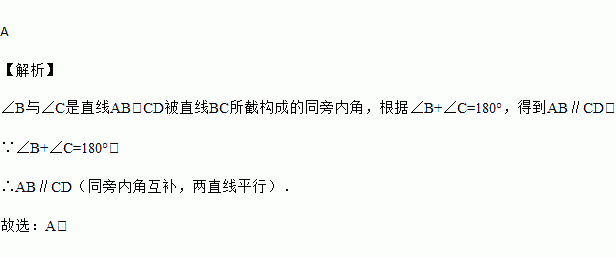 在四边形ABCD中,如果∠B+∠C=180°,那么 ( )