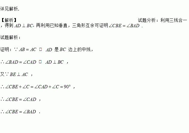 如图,在△ABC中, , 是边上的中线, 于,试说明.