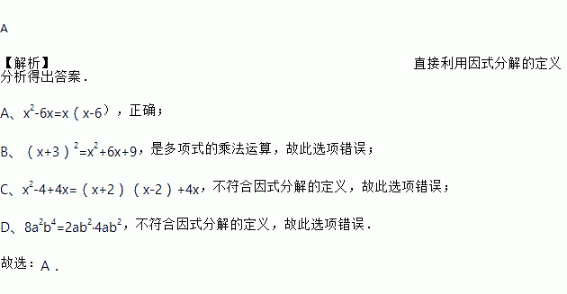A. x2-6x=x(x-6) B. (x+3)2=x2+6x+9