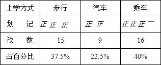 | 上学方式 | 步行 | 骑车 | 乘车 |