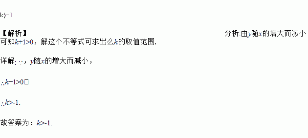 ,当x<0时,y随x的增大而减小,那么k的取值范围是____.