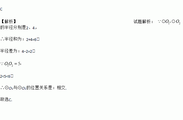 (2014•青岛)已知⊙O1与⊙O2的半径分别是2和4,O1O2=5,则⊙O1与⊙O2的位置关系是( )