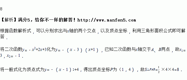 二次函数的图象与轴交于、两点,为它的顶点,则____.