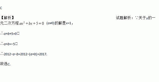 若关于x的一元二次方程ax2+bx+5=0(a≠0)的解是x=1,则2012﹣a﹣b的值是( )