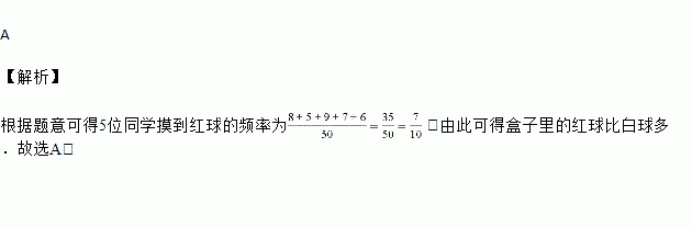 一个盒子里装有若干个红球和白球,每个球除颜色以外都相同.5位同学进行摸球游戏,每位同学摸10次(摸出1球后放回,摇匀后再继续摸),其中摸到红球数依次为8,5,9,7,6,则估计盒中红球和白球的个数是( )