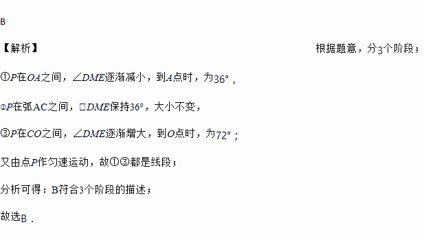 如图,点A,B,C,D,E为⊙O的五等分点,动点M从圆心O出发,沿线段OA→劣弧AC→线段CO的路线做匀速运动,设运动的时间为t,∠DME的度数为y,则下列图象中表示y与t之间函数关系最恰当的是( )
