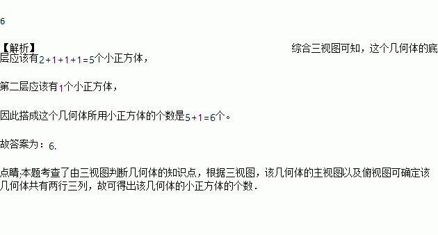 (2016·大庆中考)由若干棱长相等的小正方体构成的几何体的主视图、左视图、俯视图如图所示,则构成这个几何体的小正方体有________个.