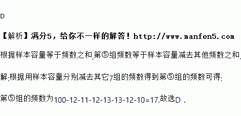 将样本容量为100的样本编制成组号①~⑧的八个组,每组频数如表所示: