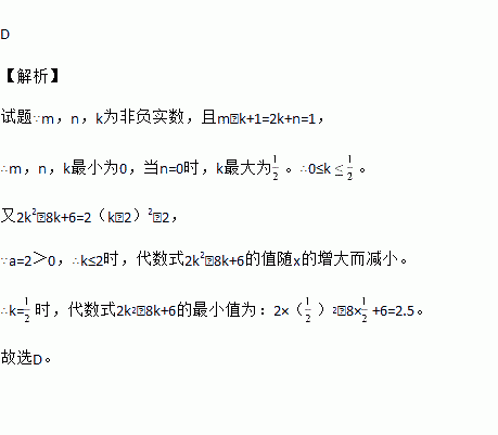已知m,n,k为非负实数,且m﹣k+1=2k+n=1,则代数式2k2﹣8k+6的最小值为