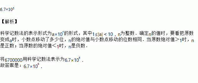 长城是我国第一批成功入选世界文化遗产的古迹之一,它的总长经过“四舍五入”精确到十万位的近似数约为6700000米,将6700000用科学记数法表示为_____.