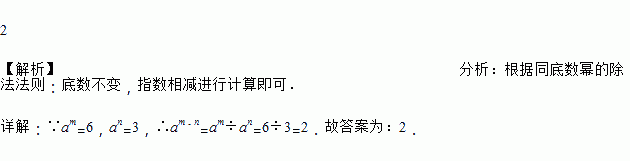 已知am=6,an=3,则am-n=__________