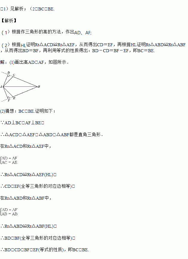 (1)在原图上画出△ABC中BC边上的高AD与△ABE中BE边上的高AF;