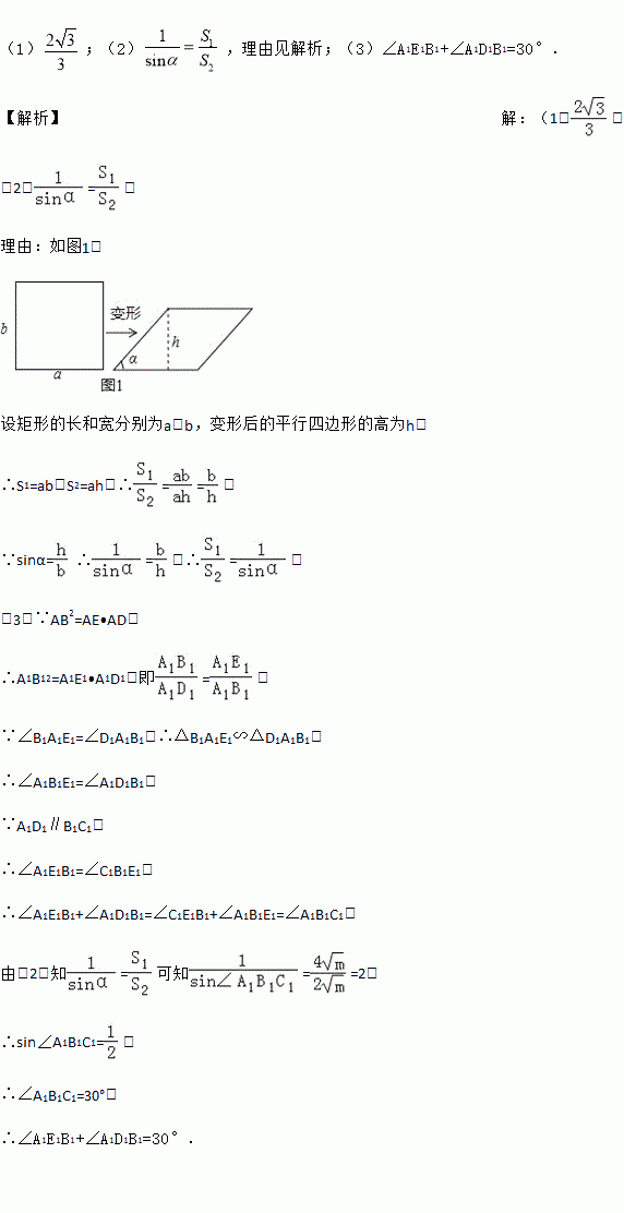 (3)如图2,在矩形ABCD中,E是AD边上的一点,且AB2=AE•AD,这个矩形发生变形后为平行四边形A1B1C1D1,E1为E的对应点,连接B1E1,B1D1,若矩形ABCD的面积为4