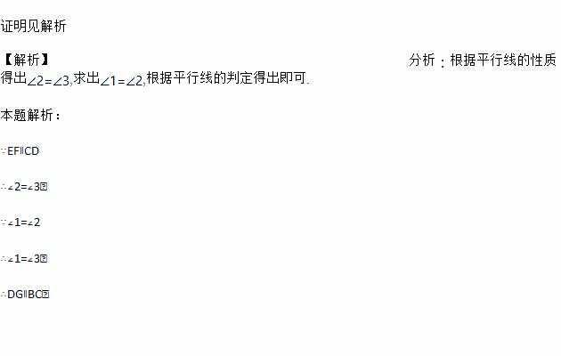 如图,EF∥CD,∠1=∠2,求证:DG∥BC.
