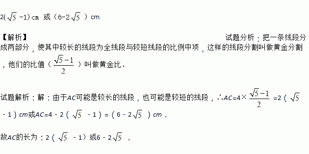 若线段AB=4 cm,点C是线段AB的一个黄金分割点,则AC的长为多少?