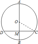 如图,⊙O的直径AB垂直弦CD于M,且M是半径OB的中点,CD=8cm,求直径AB的长.