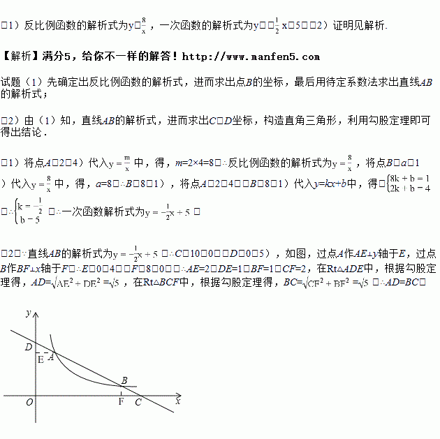 (x>0)交于A(2,4),B(a,1),与x轴,y轴分别交于点C,D.