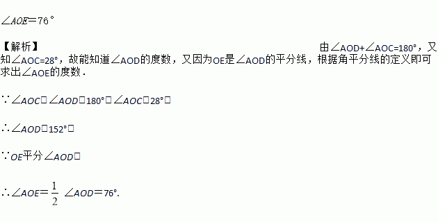 如图,直线AB,CD相交于O,OE平分∠AOD,∠AOC=28°,求∠AOE的度数.