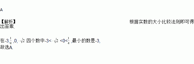 在-3,,0,-四个数中,最小的数是( )