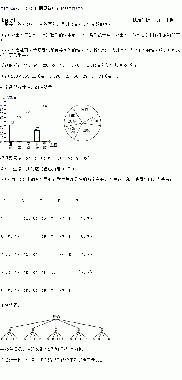 ¸öÖ÷ÌâÖÐÈÎÑ¡Á½¸ö½øÐе÷²é£¬¸ù¾Ý£¨2£©Öе÷²é½á¹û£¬ÓÃÊ÷״ͼ»òÁÐ±í·¨£¬ÇóÇ¡ºÃÑ¡µ½Ñ§Éú¹Ø×¢×î¶àµÄÁ½¸öÖ÷ÌâµÄ¸ÅÂÊ£¨½«»¥Öú¡¢Æ½µÈ¡¢¸Ð¶÷¡¢ºÍг¡¢½øÈ¡ÒÀ´Î¼ÇΪA¡¢B¡¢C¡¢D¡¢E£©£®