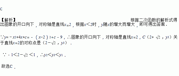 若二次函数y=﹣x2+4x+c的图象经过A(1,y1),B(﹣1,y2),C(2+