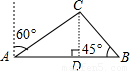 由CD⊥AB,得到∠CDB=90°,又∠CBD=45°,