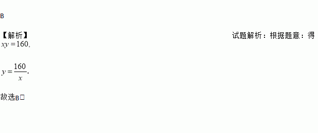 A. y=160x B. y= C. y=160+x D. y=160﹣x