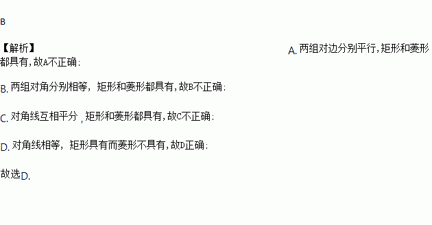 矩形具有而菱形不具有的性质是( )