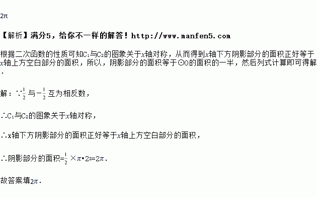 如图,⊙O的半径为2,C1是函数y=x2的图象,C2是函数y=-x2的图象,则阴影部分的面积是________.