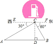 分析 过C作CD⊥AB于D,根据平行线的性质求出∠CAD及∠CBD的度数,再根据特殊角的三角函数值解答即可.