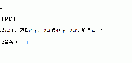 一元二次方程+px-2=0的一个根为2,则p的值________.