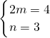分析:根据同类项的定义(所含字母相同,相同字母的指数相同)列出方程2m=4,n=3,求出n,m的值.