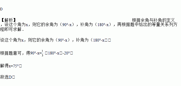 如果一个角的余角比它的补角的还少20°,那么这个角的度数是( )