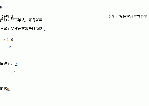 A. x≠2 B. x≥2 C. x≤2 D. x>2