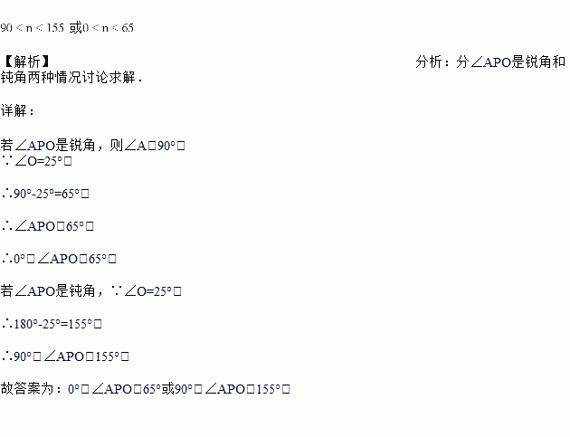 如图,已知,点是射线上的一个动点,要使是钝角三角形,,则的取值范围是__________.