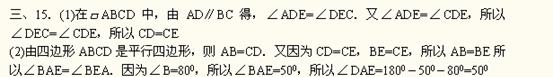 18、如图,在?ABCD中,∠A的平分线交BC于点E,若AB=10cm,AD=14cm,则EC=