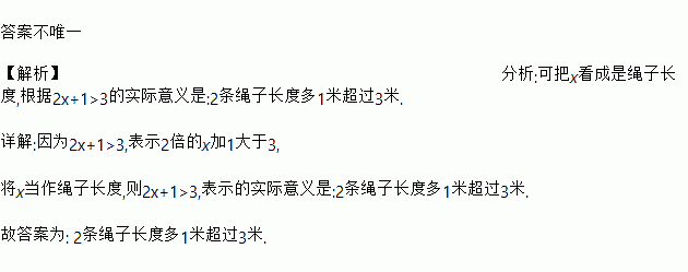 请设计一个实际背景来表示不等式2x+1>3的实际意义:_____________________.