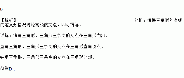三角形三条高的交点一定在( )