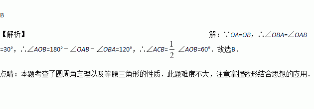 如图,⊙O是△ABC的外接圆,已知∠OAB=30°,则∠ACB为( )